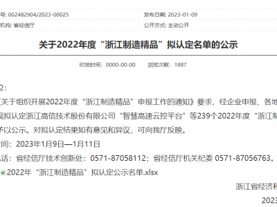 浙江省经济和信息化厅于2023年1月9日公示了2022年度“浙江制造精品”拟认定名单,JDB电子技术股份有限公司“第五代移动警务终端P99
