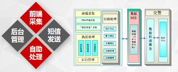 系统整合了公安、消防、法院、城市管理、财政等多部门进行协同:全面共享有公安、综治等部门 视频资源;利用交警平台进行违法行为精准告知;打通司法 平台,针对拒不接受处罚的车主,采用非诉执行、信用惩戒的方式,实现有效监管;打造线上便民平台,畅通举报投诉 通道;完善线上违法处理与缴费功能,实现“最多跑零次”。